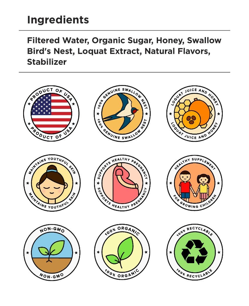 闪购有机冰糖燕窝饮料 -枇杷 和蜂蜜 - 12 瓶 x 240 毫升(8盎司)